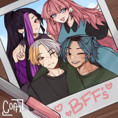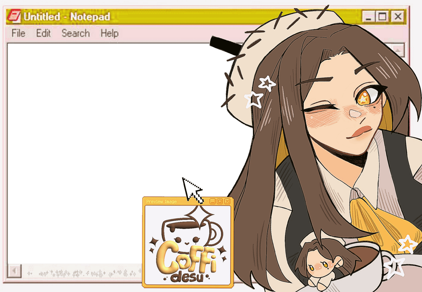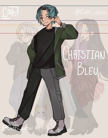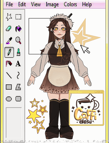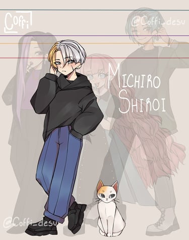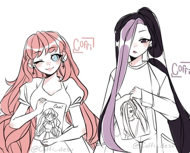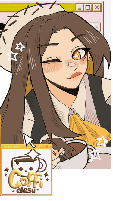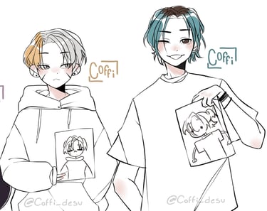 El diseño inicial era simplemente una representación mía en estilo anime pero en cuanto comencé a tomarme mis redes sociales enserio decidí darle una identidad propia a 'Coffi'.